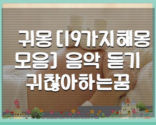 위 정리드린 해몽내용은 귀몽[19가지해몽모음] 음악 듣기 귀찮아하는꿈 알아보았습니다. 해몽정보가 꿈해몽 찾으셨던분께 좋은 정보가 되셨길 바랍니다.