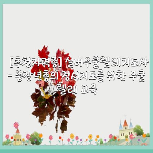 이 자격을 취득하면 중장년층과 함께 소중한 순간을 공유하며, 그들의 더 풍요로운 삶을 형성하는 일에 참여할 수 있습니다. 실버우쿨렐레지도사 자격은 자신의 역량을 향상시키고 사회에 긍정적인 영향을 미치는 기회를 제공합니다. 이 자격을 통해 중장년층의 정서지도에 기여하고 더 나은 세상을 만들어나가는 전문프로에 조인해보세요.