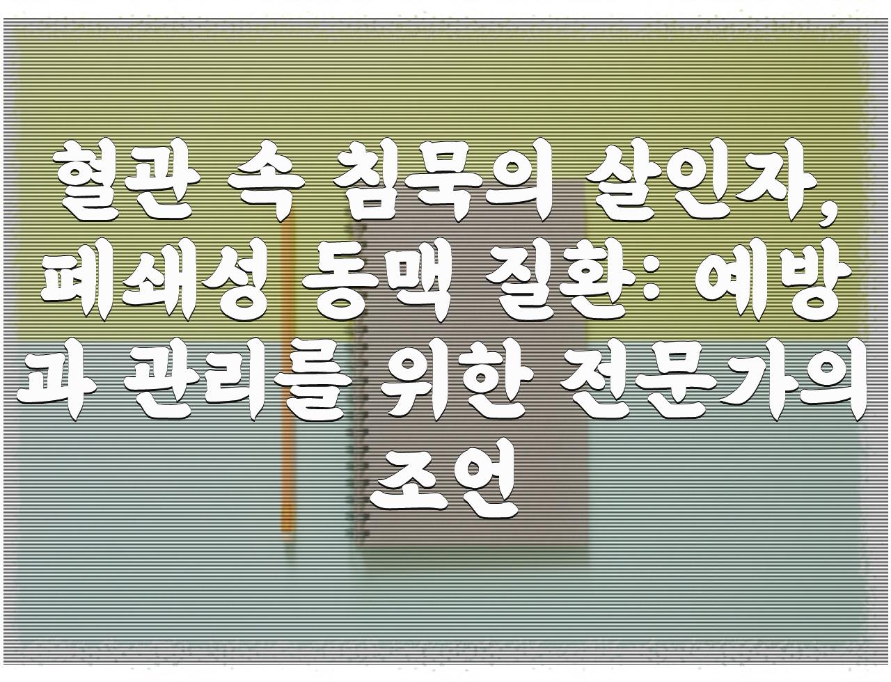 공유드린 내용은 혈관 속 침묵의 살인자, 폐쇄성 동맥 질환: 예방과 관리를 위한 전문가의 조언 관련 정리 입니다. 이해에 도움이 되셨길 바랍니다.