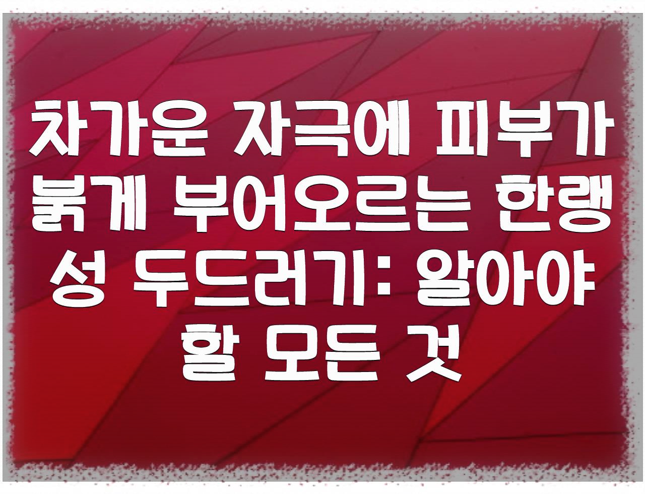 정리드린 내용은 차가운 자극에 피부가 붉게 부어오르는 한랭성 두드러기: 알아야 할 모든 것 입니다. 부디 보시는 분들께 좋은 정보가 되셨으면 합니다.