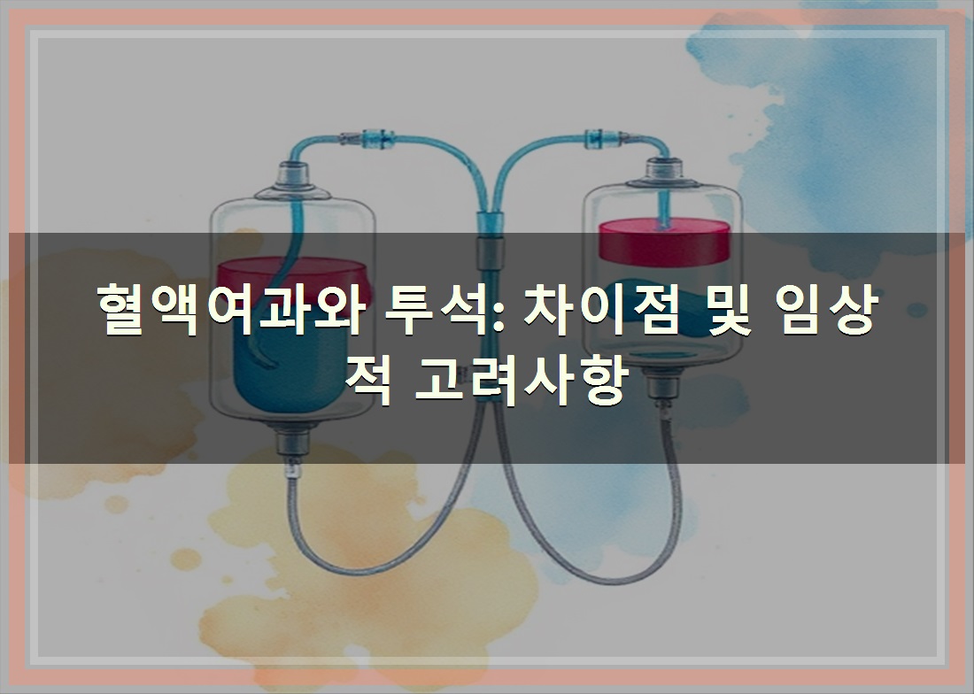 공유드린 내용은 혈액여과와 투석: 차이점 및 임상적 고려사항 관련입니다. 상기 내용이 좋은 내용이 되었길바랍니다.