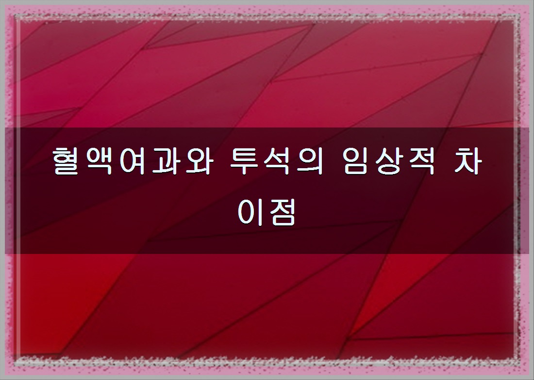알아보자 :: 혈액여과와 투석: 차이점 및 임상적 고려사항